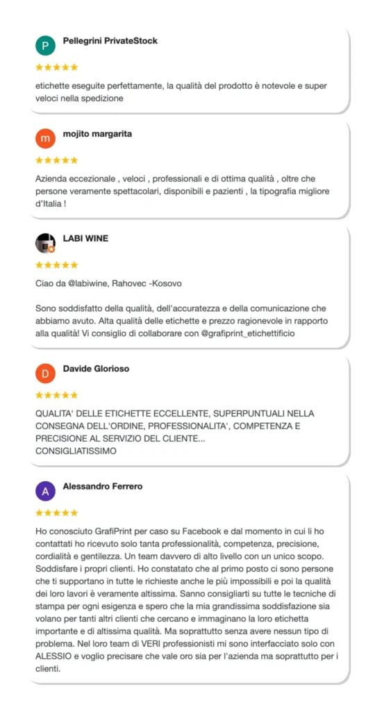 Se le etichette non ti soddisfano al 100%, le ristampiamo o rimborsiamo l’importo pagato. Senza discussioni.